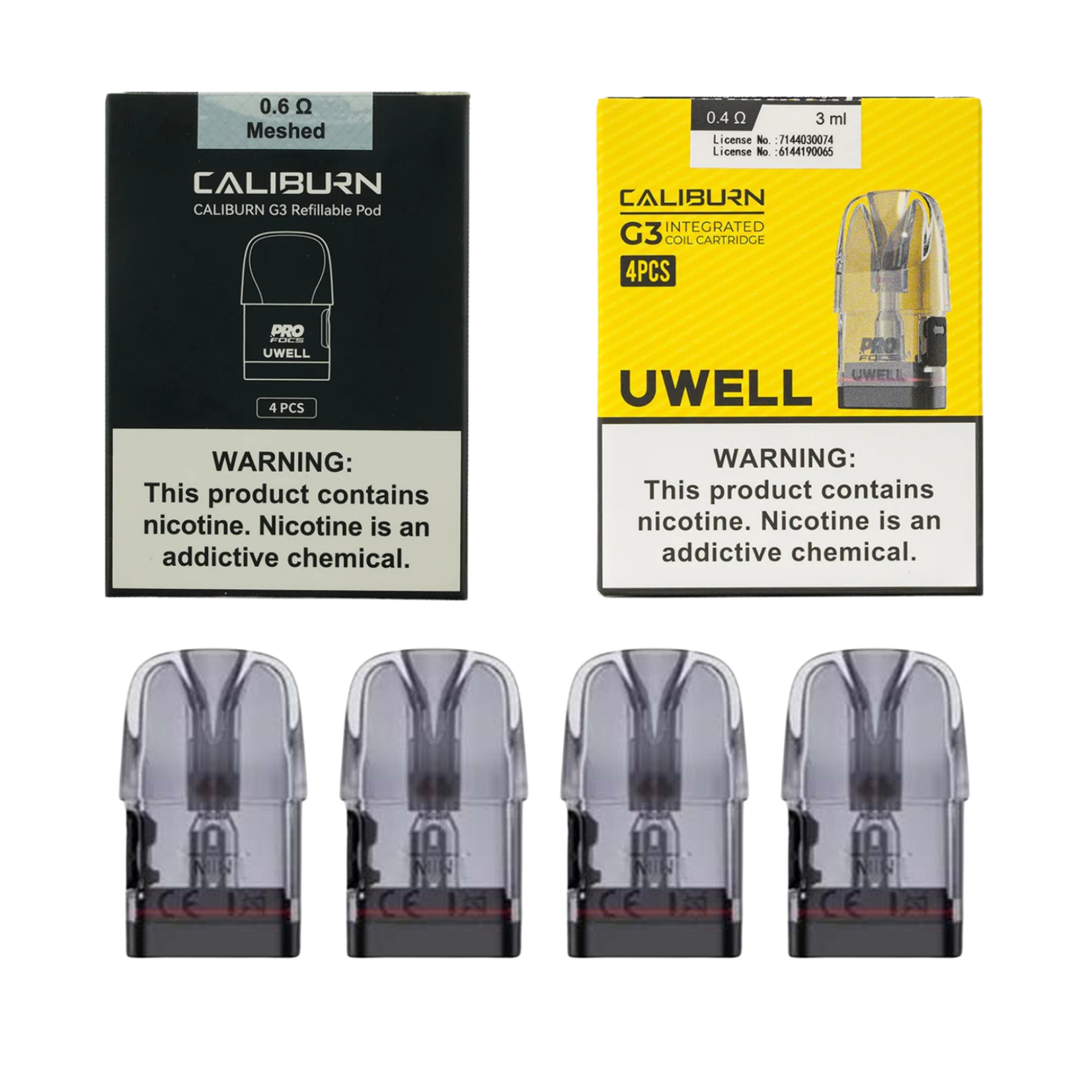 Uwell Caliburn G3 Side-Fill Pods hold 2.5mL of e-liquid and come in 0.4Ω, 0.6Ω, 0.9Ω, and 1.2Ω mesh resistances for RDL and MTL vaping. Leak-resistant, flavor-boosting, and compatible with all Caliburn G3 series devices. Sold as pack of 4.